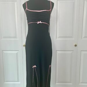 This Speechless Dress in Size M is form fitting. The spaghetti straps lead to a pink satin framed neckline. The skirt of the dress has a slightly scalloped bottom, that flares softly at the knee, or just below, depending on your height. This dress is ideal for traveling because it does not wrinkle or crease. It is a versatile sexy, yet feminine cocktail dress.