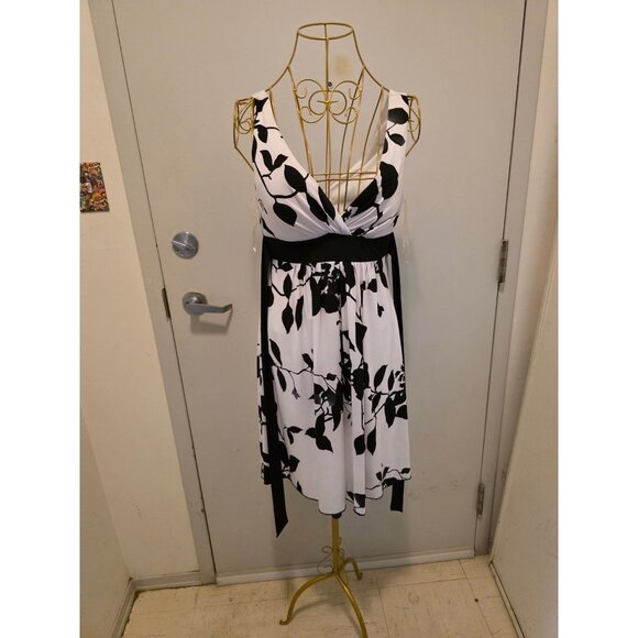 Speechless Black and White Floral Print Women's Dress Medium Sleeveless V-Neck