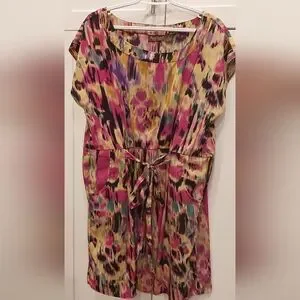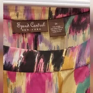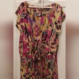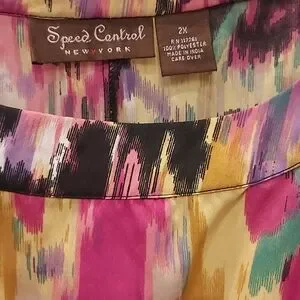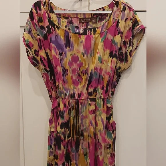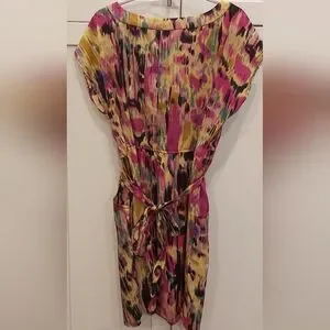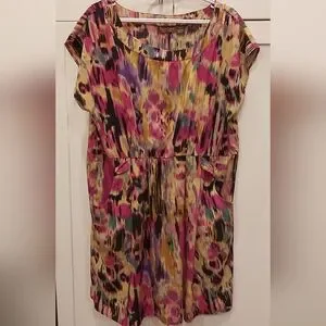 Speed Control dress. Built in belt, pockets, elastic waist, pull-over styling, no set shoulder, scoop neck, cap sleeves, easy care polyester