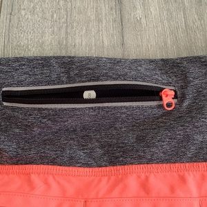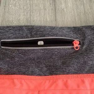 Regular rise speed shorts. These have been worn, small dark stain on back ( shown in pictures). Waterproof back zipper pocket.