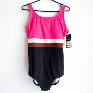 Speedo Colorblock Black Pink Open Back One Piece Swimsuit 14