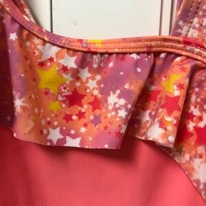 Speedo Girls One Piece Swimsuit Coral Pink with Star Ruffle Size 6 NWOT