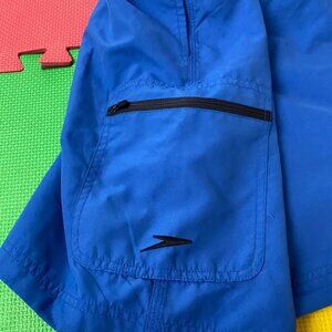Speedo Swim Shorts Men Size Large Blue Pockets Polyester - STAIN - READ