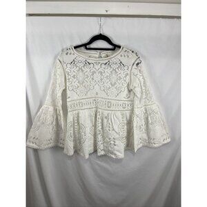 Spell (And the Gypsy) White Lace Empire Waist Boho Top w/ Bell Sleeves