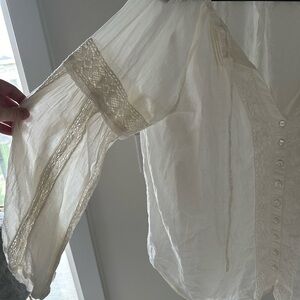 This cream blouse from Spell features a relaxed fit with long sleeves, offering a light and airy feel. Its buttoned front and delicate fabric make it a versatile choice for both casual and elegant occasions.