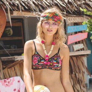 Spell Hotel Paradiso Bralette Bra Crop Top Jet Print Size XS b72E