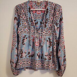 A flattering, relaxed signature Spell blouse in Pandora print in gorgeous aquamarine tones. Pair with denim for that effortless, vintage inspired look!