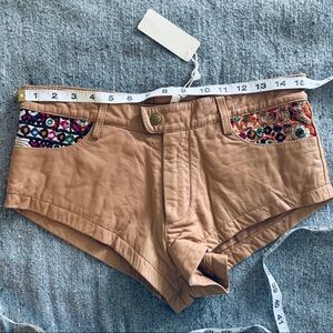 Spell & The Gypsy Collective Desert Wanderer Embroidered Tan Leather Shorts.