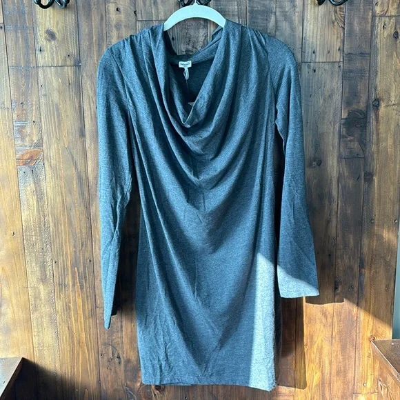XS, fitted mini long sleeve, cowl neck dress, unlined, no pockets