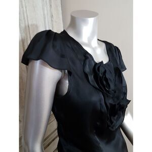 Spense Medium black blouse with floral detail. Side zipper and button back