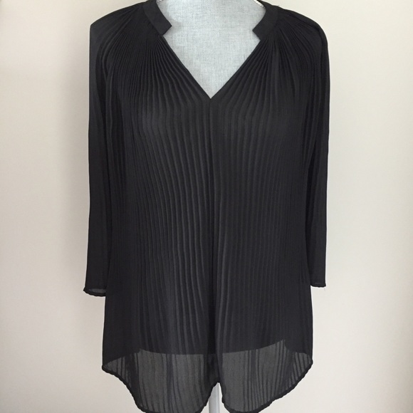 Spense Black Top. This item is pre-loved and in great condition. Love it just don’t wear it anymore. This top is see through so a tank top is recommended. Size is M however this shirt flows and should fit a large.