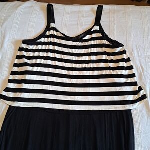 Spense womens size XXL black & white maxi dress, the top striped portion of the dress is overlay on the black base, nice flowy, stretchy, lightweight dress, straps are grosgrain ribbon.