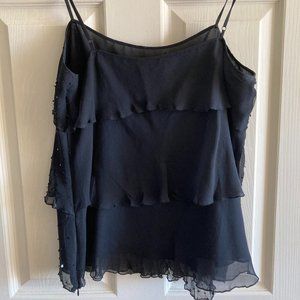Spenser Jeremy Black Silk Camisole Layered Top with Sequence - EUC