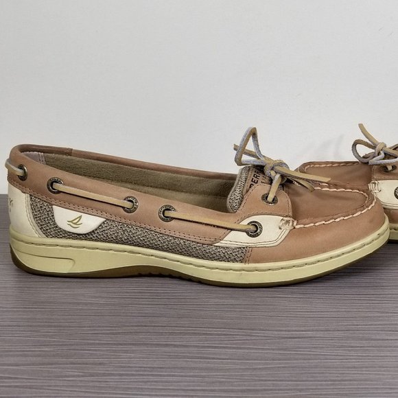 Sperry Angelfish Boat Shoe, Linen-Oat Leather, Womens Size 6 M / 36