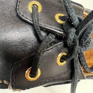 Classic Sperry boat shoes. Black leather with brown accents. Durable and stylish.