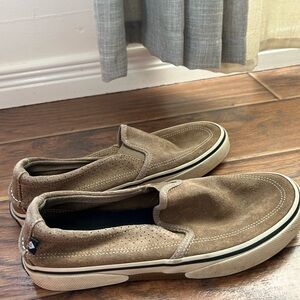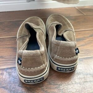Step into effortless style with Sperry's brown slip-on loafers, designed for easy wear and all-day comfort. These shoes feature a classic loafer silhouette with a rich brown hue, perfect for adding a touch of sophistication to your casual wardrobe. Enjoy the convenience of a laceless design and the timeless appeal of Sperry craftsmanship.