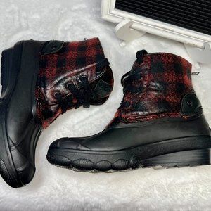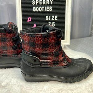 Sperry Red & Black Plaid Saltwater 🌨 Wedge Tide Wool Ankle Boots - 7.5