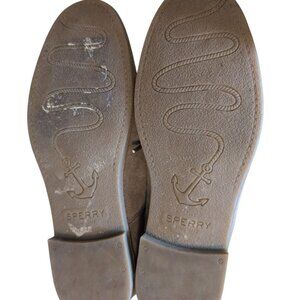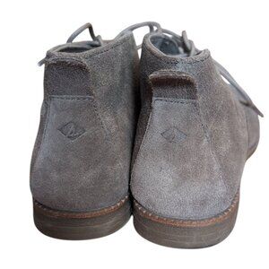 Sperry Shoes Tan Lace up Leather Ankle Booties Low Heel with Back Pull Tab Comfy