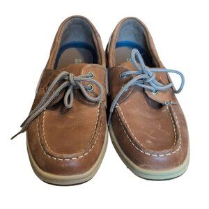 Sperry Shoes Top Sider Intrepid 2 eye Boat Shoes Tan Leather Slip on Deck Loafer