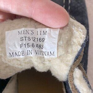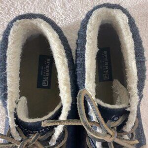 Great used condition. Minor signs of wear shown in pics. Canvas. Feel secure with every step and stylish all season long when you wear this Sperry chukka boot! Canvas upper. Genuine hand-sewn tru-moc construction for durable comfort and long-lasting style. Rust-proof metal eyelets with rawhide laces for a secure fit. Textile lining. Cushioned footbed. Vulcanized construction provides a secure bond between upper and outsole. Lightweight EVA midsole provides comfortable support. Nonmarking rubber outsole with lug pattern featuring razor cut Wave-Siping for the ultimate traction on both wet and dry surfaces. Size 11