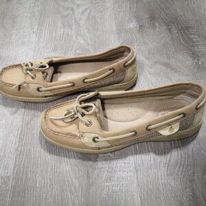 Sperry Top-Sider Ladies Size 7M Tan & Beige Leather & Synthetic Upper Boat Shoes
