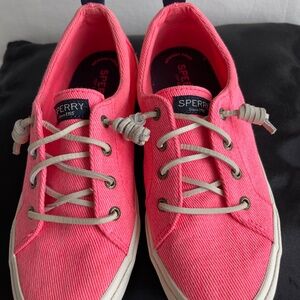 Ladies size 7, lightly worn, Sperry Topsider Sneaker/boat shoe non slip sole. Hot pink with leather laces. Medium width.