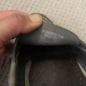 - grey/blue leather upper, rubber sole, leather shoe-laces