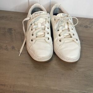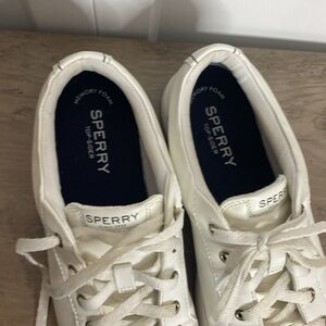 Stylish white sneakers by Sperry. Perfect for everyday wear. Comfortable and versatile.