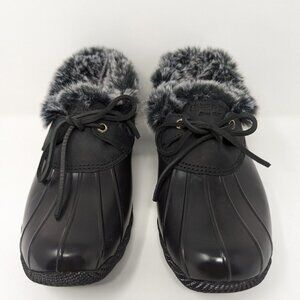 Sperry Women's Saltwater 1-Eye Boots Black Fur Trim Tech Wave Booties Women's 9M