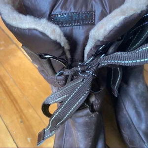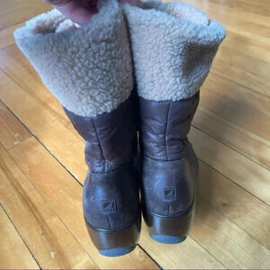 Sperry brown leather wedges faux fur lining boots