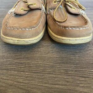 Sperry top sider womens size 9 gold and tan. Great condition some minor signs of wear.