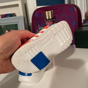 Let your child explore his universe in comfort with the Adidas Spider-Man Racer TR21 infant fashion shoes. Made in part with recycled materials, the upper features the iconic colours and a bold graphic of the superhero as well as spiderwebs on both sides. The elastic laces and heel pull let you slip them on in a flash. And the grippy rubber outsole will allow your little hero to run, jump and play on a variety of surfaces.
