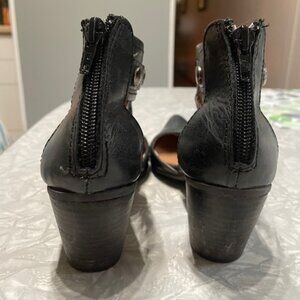Spiral Black Leather Heels Made in Spain. Sz 36