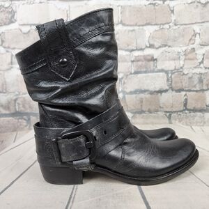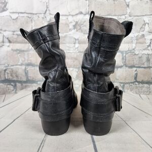 Spiral Leather Slouchy Biker Cowboy Boot Adjustable Harness Black Size 39