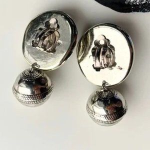 Lightweight silver metallic plastic earrings; secure metal clips.