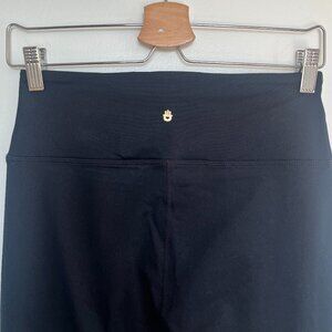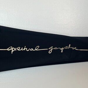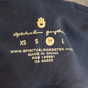 Spiritual Gangster Black leggings with gold graphic on the left leg.