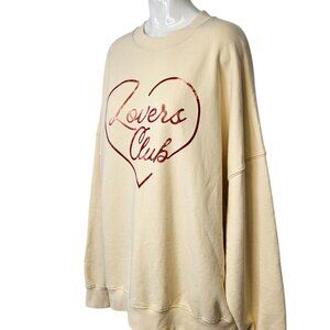 Spiritual Gangster Boyfriend Pullover Sweater, Graphic Lovers Club, Cream, Sz M
