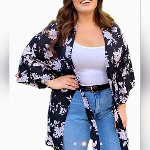 Made of rayon fabric to keep you cool, this kimono can be dressed up or down. It features soft, comfortable front pockets and a belt, so you can wear it multiple ways.