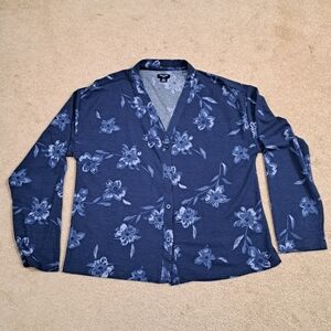 Splendid 2 Piece Pajama Set Blue Floral Top And Pant Size XL Waffle Knit NWOT