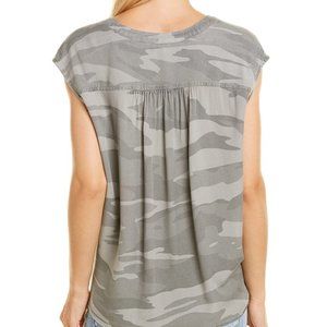 Top In Camo With Surplice Front, Shirring Details And Elasticized High-Low Hem
