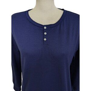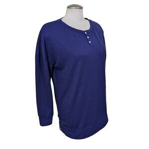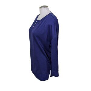 Splendid Henley Tunic Top Womens M Navy Blue Long Sleeve Ribbed Hem Side Splits