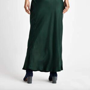Relaxed glamour-- that's how we describe our Orla Satin Skirt by Splendid in this rich teal colour. This elevated maxi is crafted from sleek cupro satin in a bias cut slip-style design. It hits at the natural waistline with a side zip and a floor-length hem with a side vent. Top it with sweaters, button-downs or tanks-- it lends a polished finish to anything you pair it with.