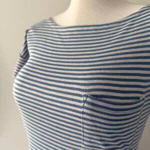 Splendid Striped Top Womens Size Small Boat Neck Blue Grey Stripes Short Sleeve