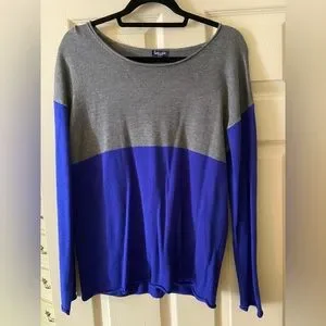 Perfect for the holidays. Bright blue on bottom and grey on top. Looks a little wrinkly from storage but in great condition. No visible pulls. Worn a few times. Christmas closet clean out 🎄