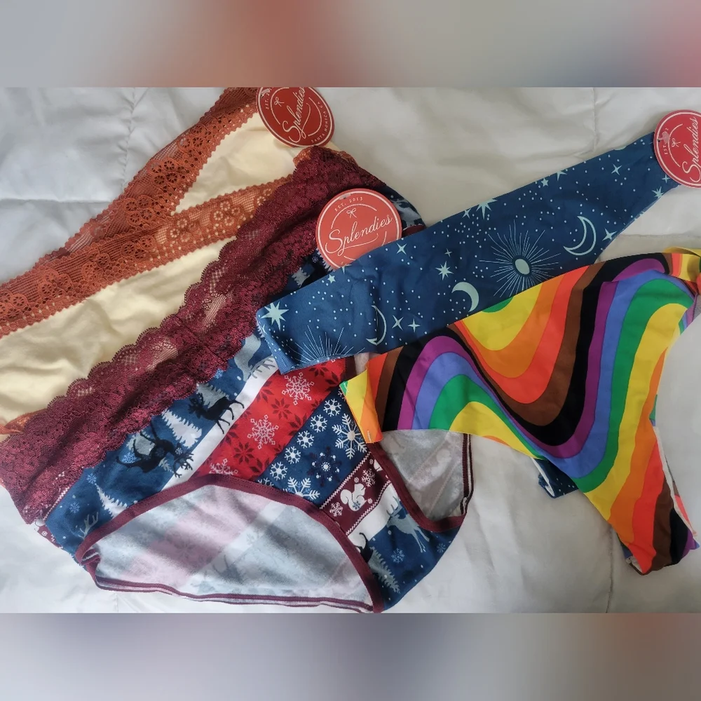 4 pairs size large . new with tags. never worn. 2 full bottom and 2 thongs