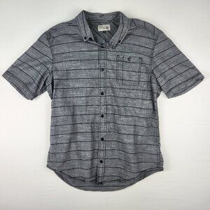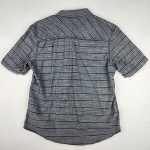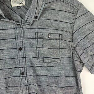 Split Mens Short Sleeve Button Down Single Pocket Gray/Black Strip Shirt Sz XL/G