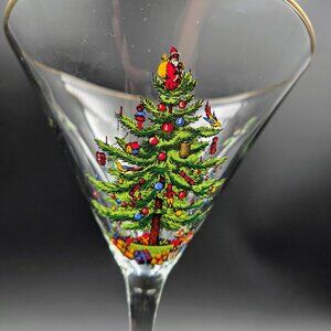 Spode Christmas Tree Martini Cocktail Estate Glass Stemware Santa Read