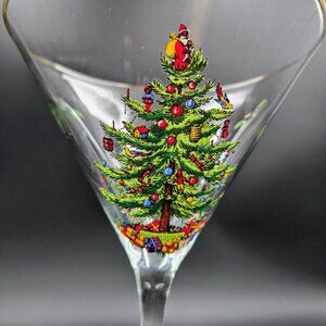 Spode Christmas Tree Martini Cocktail Estate Glass Stemware Santa Read