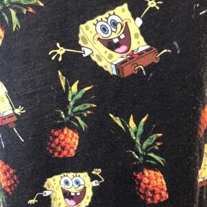 🎄Sponge bob square pants black patterned print pineapple shirt tank top SZ L
