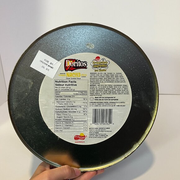 SpongeBob Doritos Chip Tin With Lid Viacom 2004 Vintage Large Metal Can 11.5"x10
